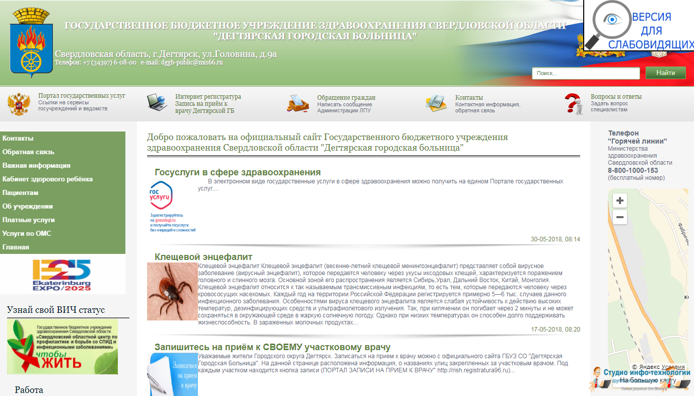 Разработка сайта для ГБУЗ СО "Дегтярской городской больнице"