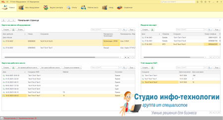 Программа для маленького объекта для учёта техники, выдачи сим карты, учёт ЭЦП, Воз оборудования на объект. Карточка ввоза оборудования: Здесь заносятся все техника ввезённая на объект для контроля. Карточка выдачи сим карт: Контроль за выдачей сим карт и блокировки номеров при увольнении. Карточка рабочего места: В ней ведется весь учёт выданной техники и периферийных устройств Учет выданных