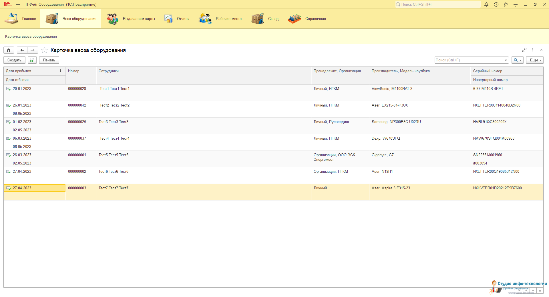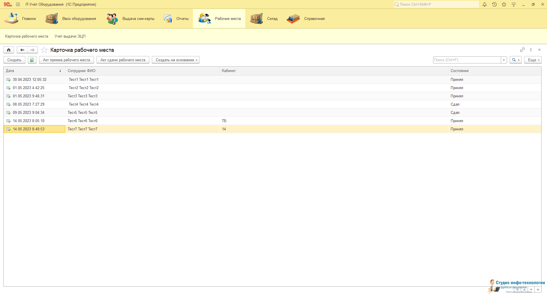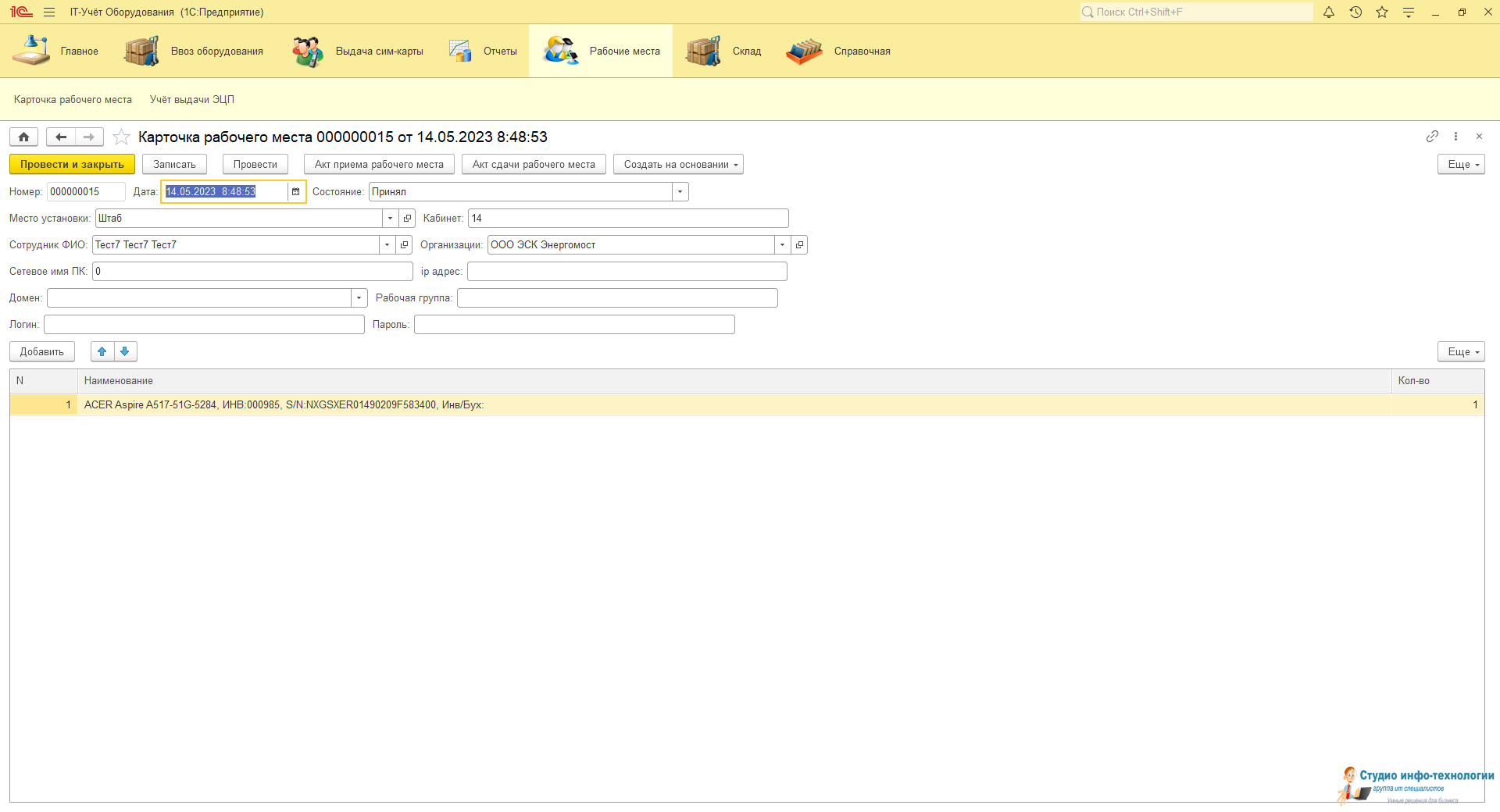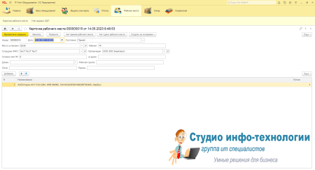 Карточка рабочего места: В ней ведется весь учёт выданной техники и периферийных устройств