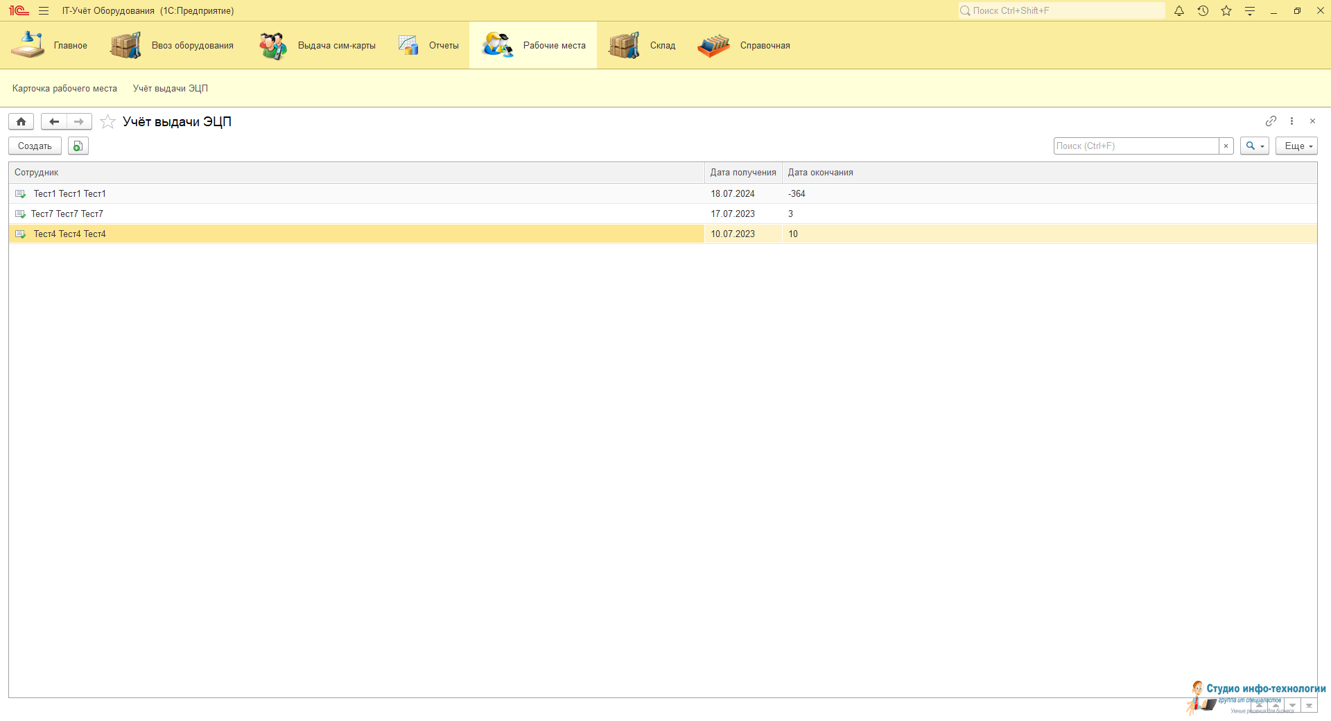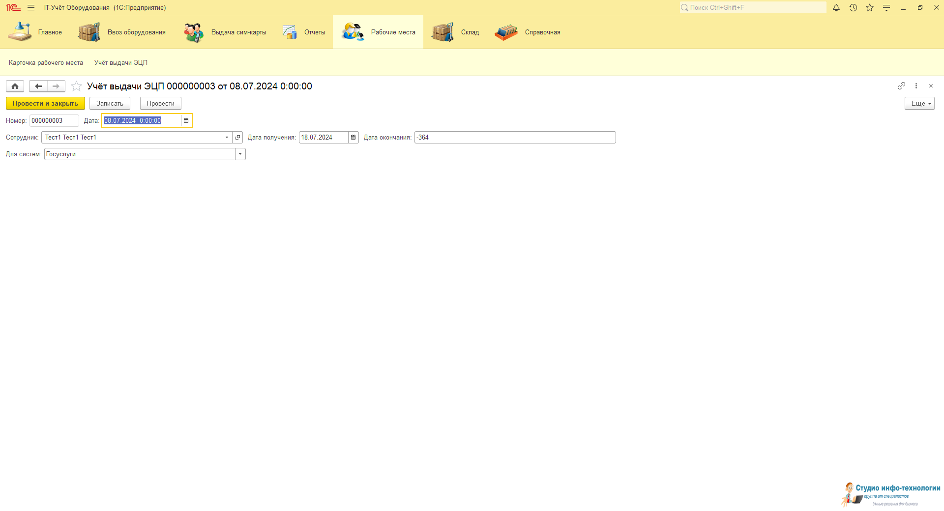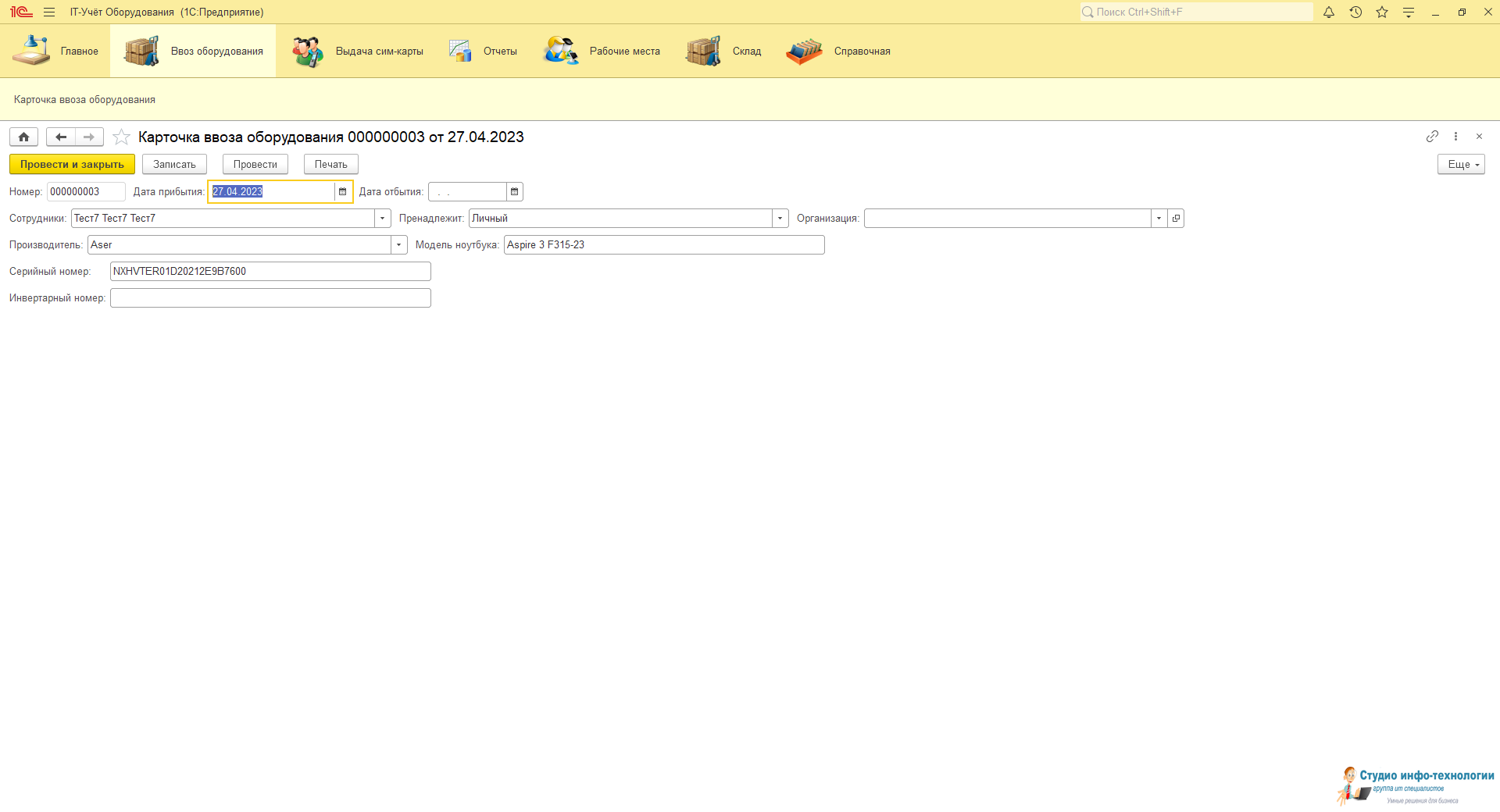 Карточка рабочего места: В ней ведется весь учёт выданной техники и периферийных устройств