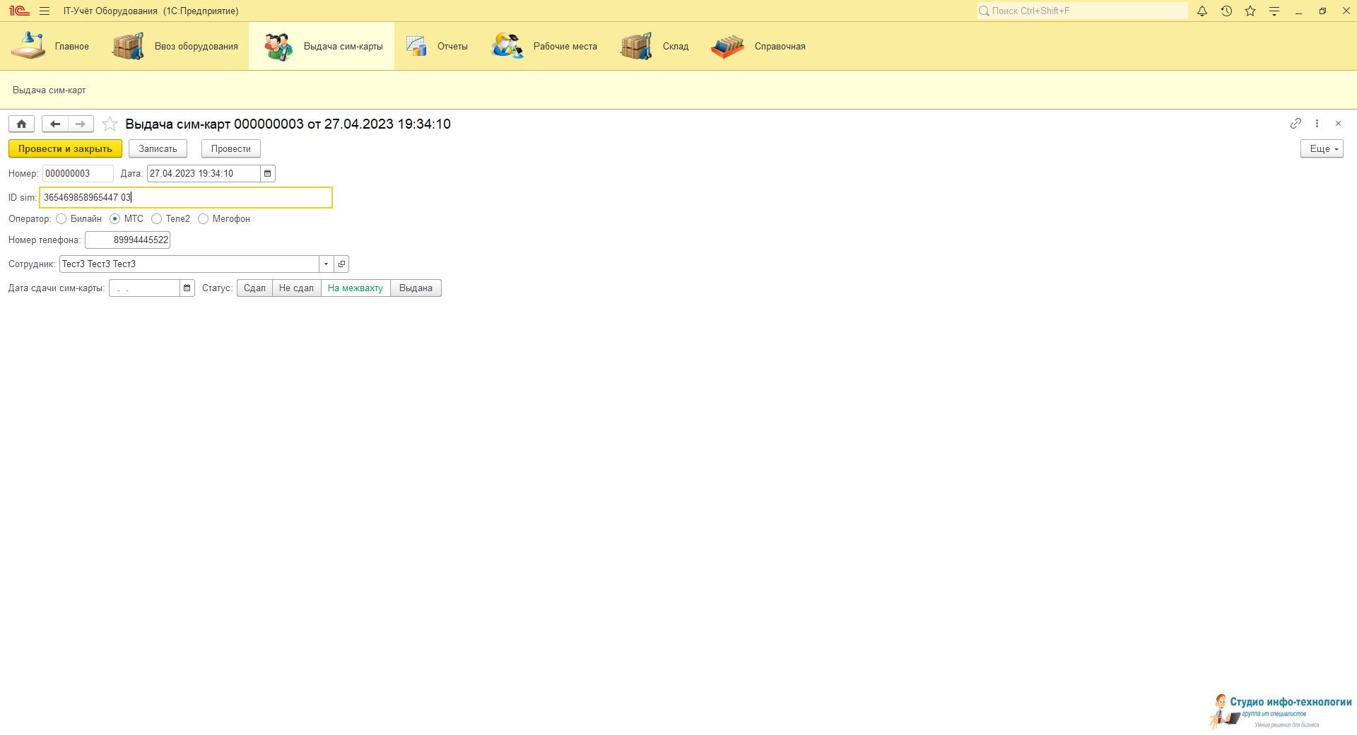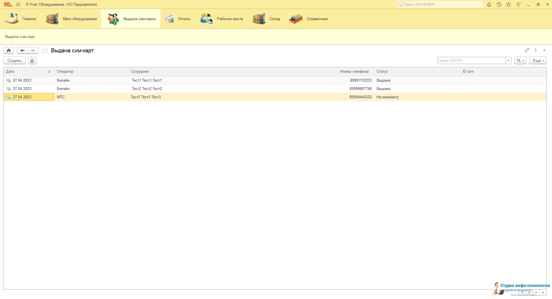Карточка выдачи сим карт: Контроль за выдачей сим карт и блокировки номеров при увольнении.