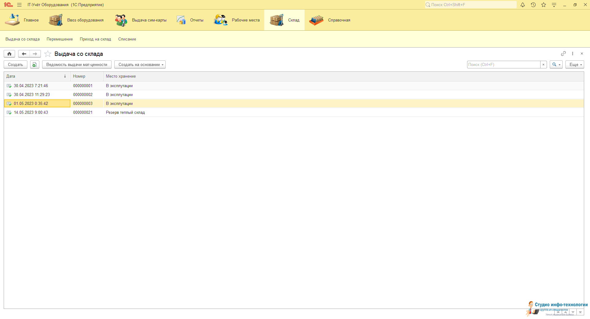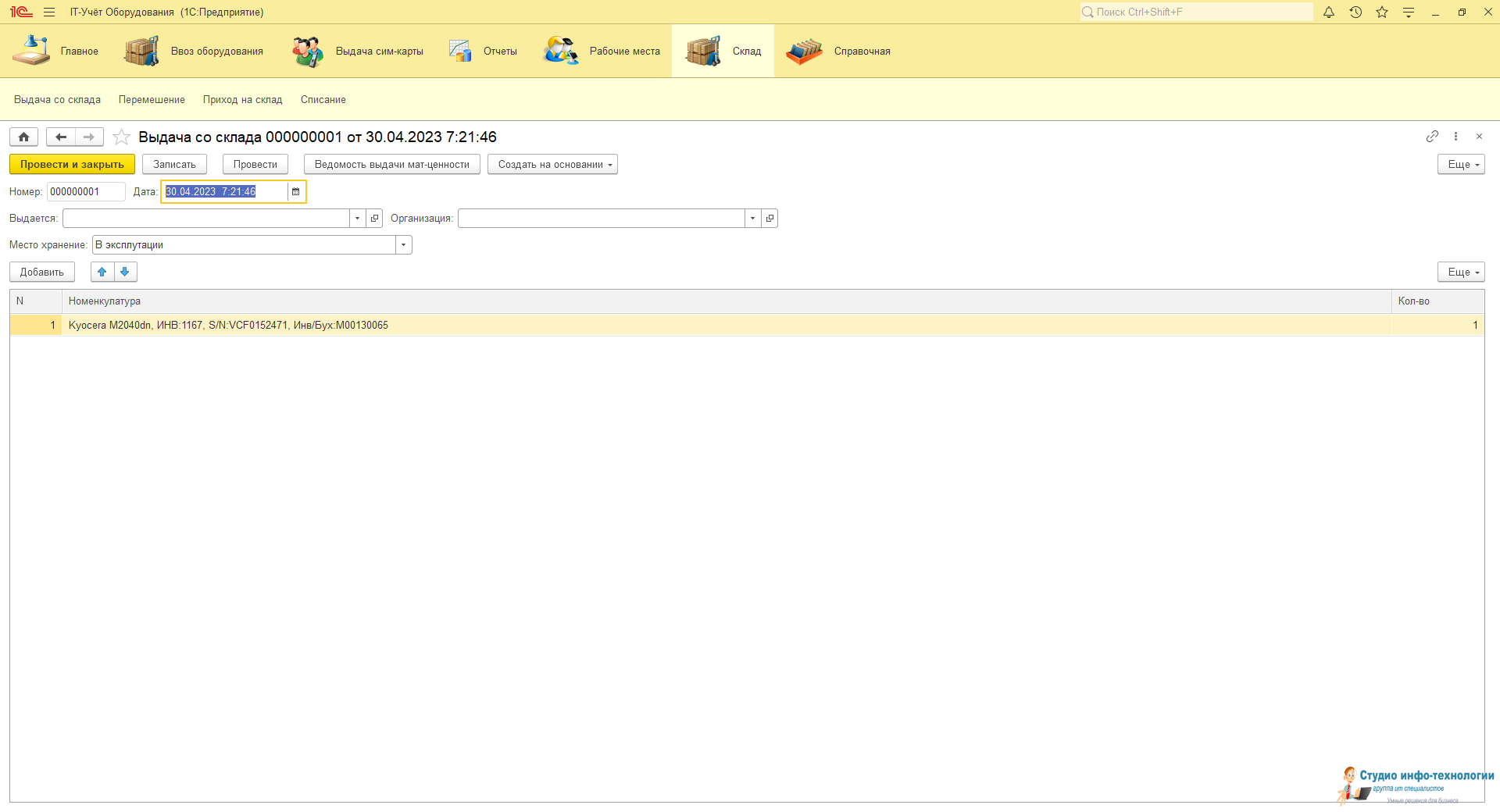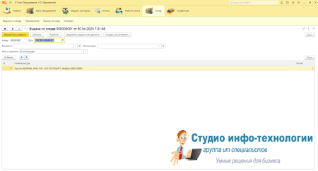 Карточка выдача со склада: учёт выданной техники