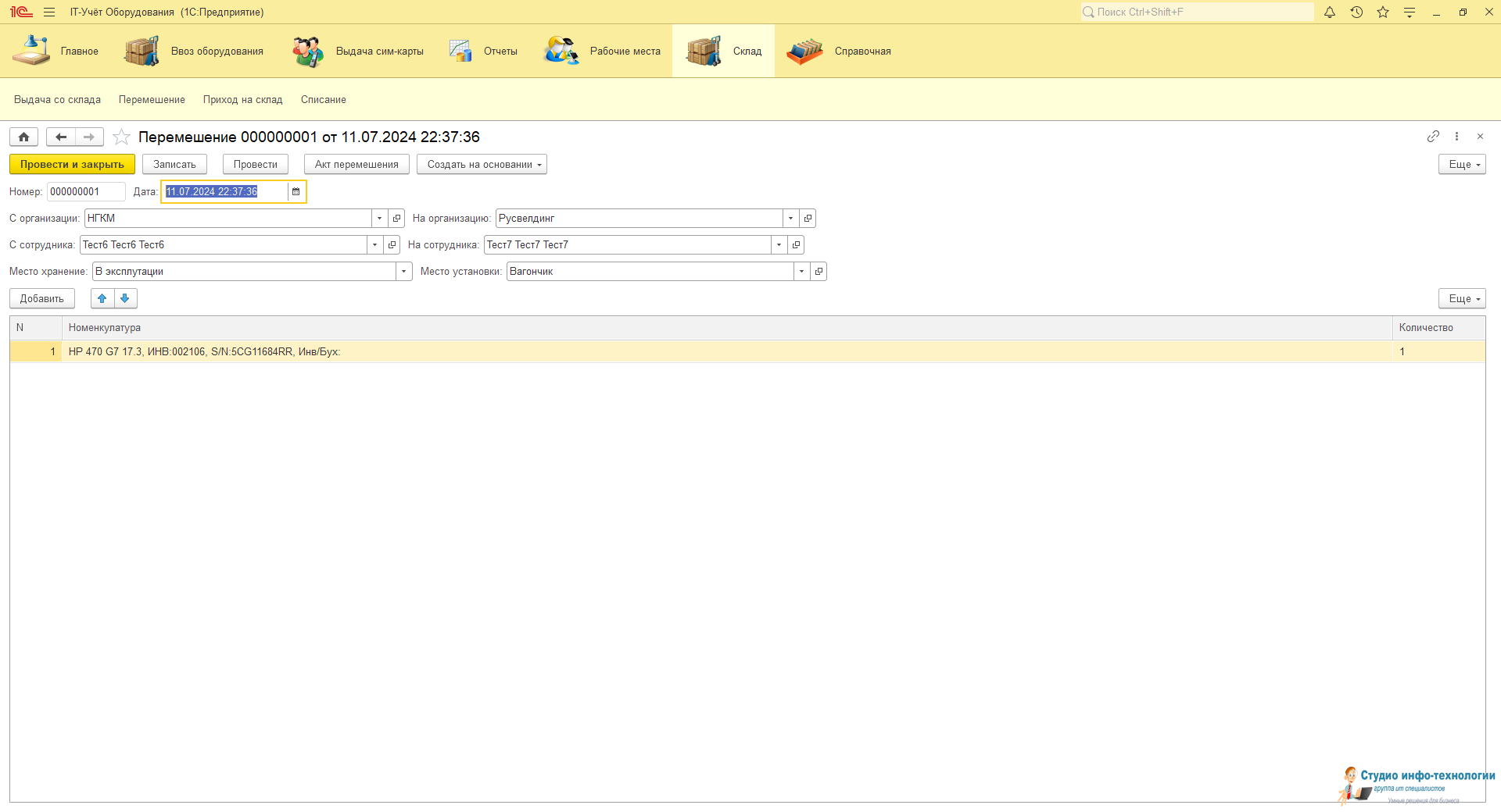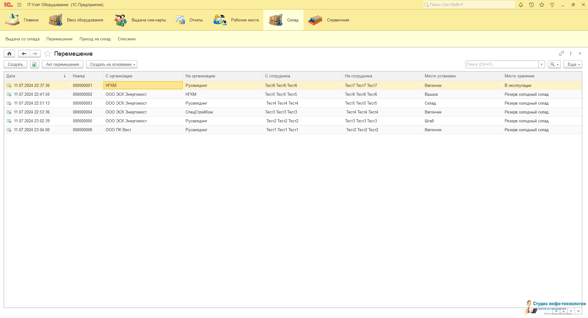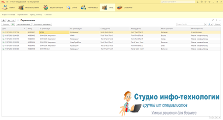 Перемешения техники: Перенос техники с одного сотрудника на другого сотрудника или между организациями
