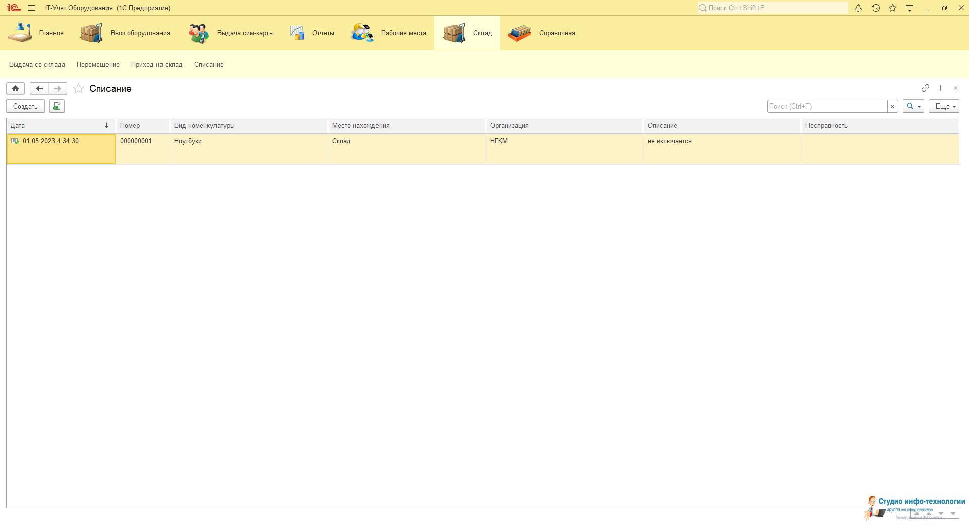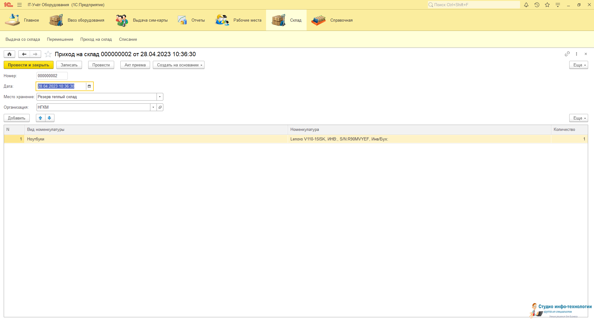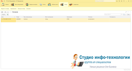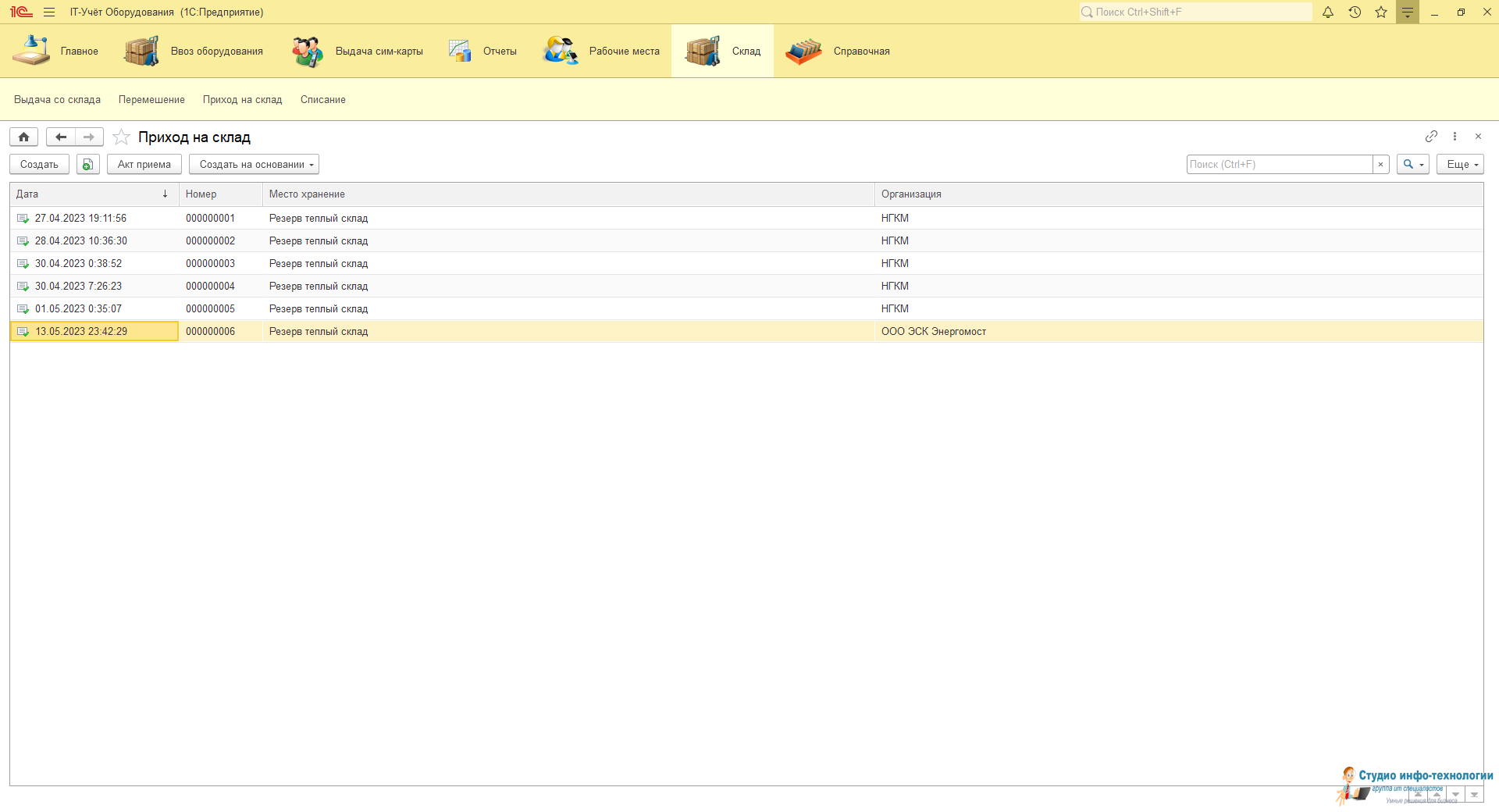 Приход на склад: Заносятся вся техника которая поступает на учёт в объекте