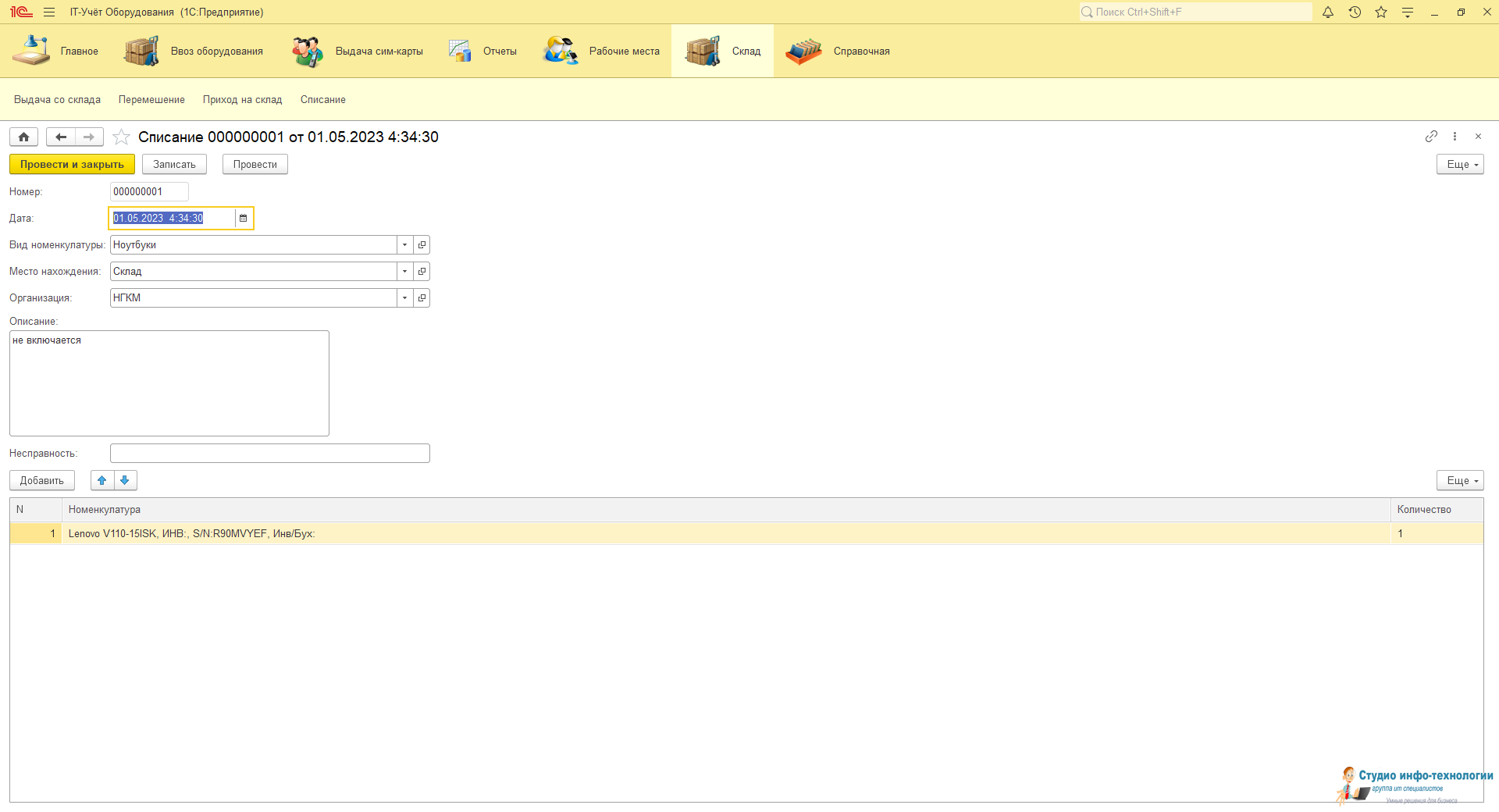 Списание: Учет всей поврежденной техники и периферийных устройств на объекте которая предназначается на утилизацию