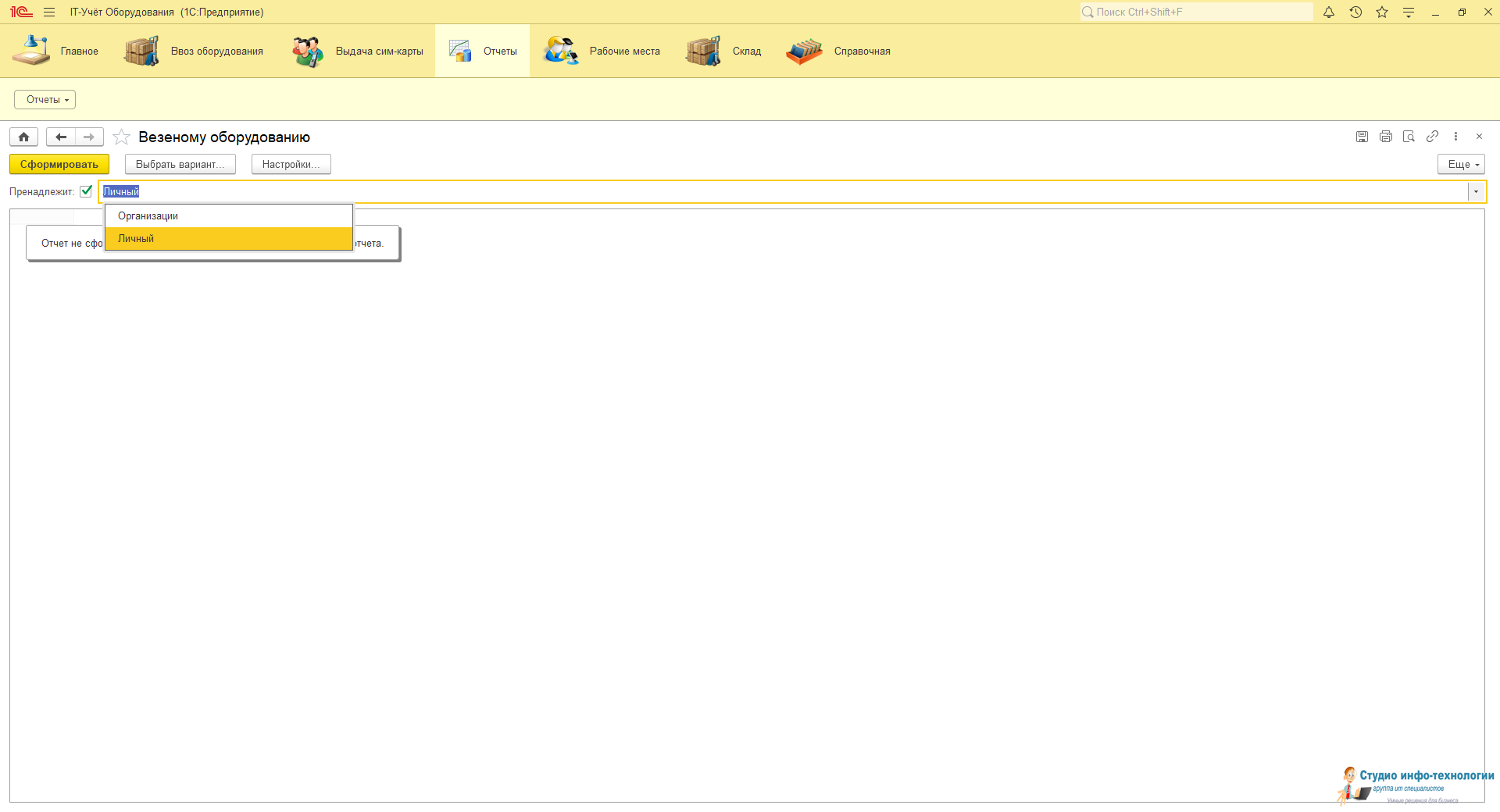 Отчёт по везеному оборудованию на объекте: Данном отчёте можно просмотреть сколько и какая техника в везена на объект личная сотрудника или выдана сотруднику в организации