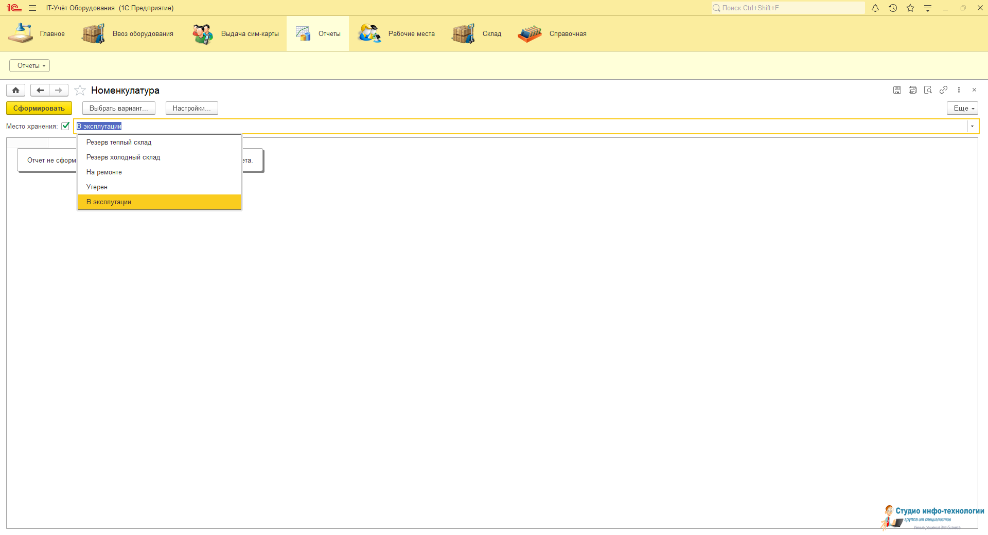 Отчёт по номенклатуре: Данном отчёте можно просмотреть всю технику и периферийных устройств было закуплено на объект.