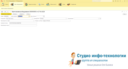 Карточка ввоза оборудования: Здесь заносятся все техника ввезённая на объект для контроля.