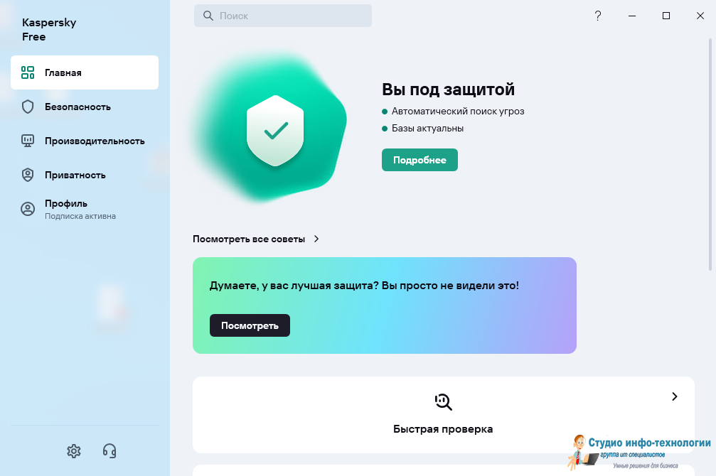 Kaspersky Free - бесплатный Антивирус Касперского. Обеспечивает комплексную защиту от различных видов информационных угроз, сетевых атак и мошенничества.