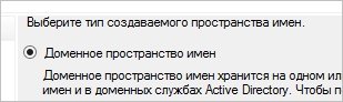 Теперь выбираем тип пространства. В доменной среде лучше оставить Доменное пространство имен: