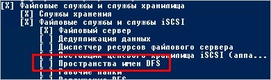 Команда выведет полный список установленных ролей. Найдите среди них пространство имен DFS