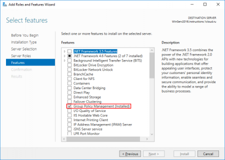 Если оснастку не удается открыть, то возможно по определенным причинам она не установлена. Установить ее можно через стандартное меню Add roles and features в диспетчере сервера, выбрав компонент Group Policy Management.