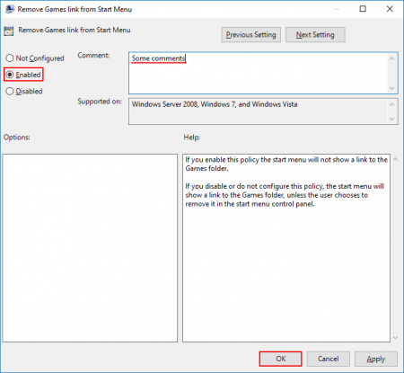 В открывшемся окне отметьте Enable для включения правила и при необходимости напишите комментарий. Нажмите OK для сохранения изменений.